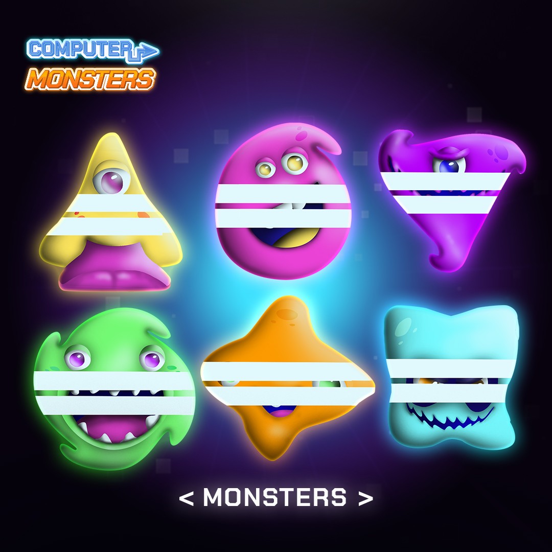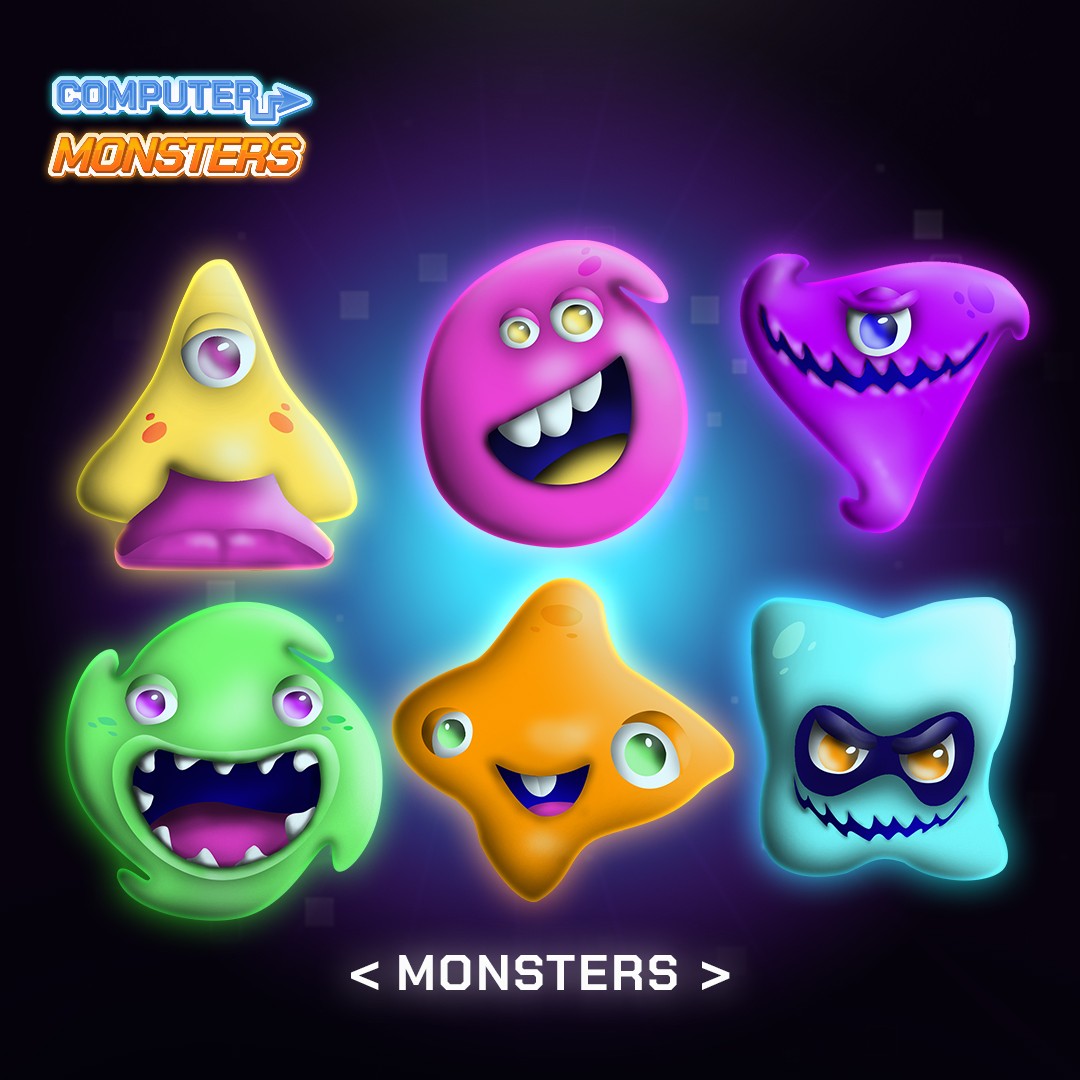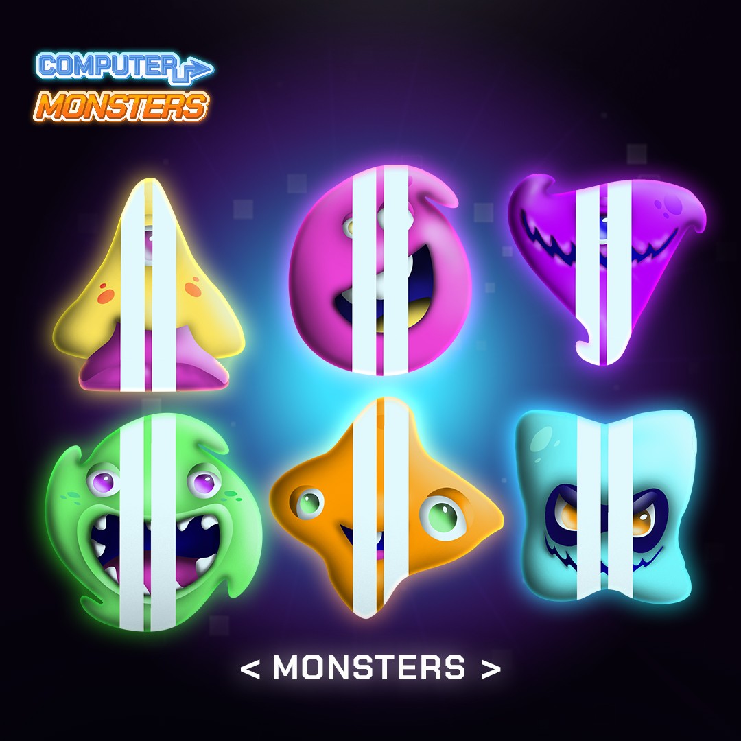 In Computer Monsters, the player is tasked with cleaning their computer from dangerous viruses threatening to destroy all files. Each level represents a different infected zone that must be "purified" by defeating unique virus characters. The game combines glowing, tech-inspired visuals with simple geometric shapes. Each virus character represents a different threat type, such as malware, trojans, and data thieves, each with a distinct visual and behavioral identity. Players use computer-themed abilities and tools to fight off the viruses, turning a dark digital threat into a colorful, fun experience suitable for both kids and adults. The core design challenge was to balance the seriousness of the theme with playful, approachable aesthetics while keeping a clear connection to both the digital and gaming worlds.